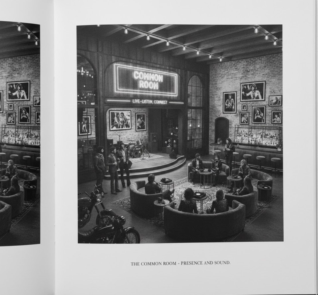 Common Room is an artist-first listening room and cultural home. Purpose-built spaces with exceptional acoustics and inviting hospitality. A community designed around membership for real fans and repeat performances. Where residencies replace one-night stands, and the room belongs to a like-minded community, day and night.